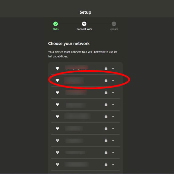 11.表示されるネットワークの中から、ご自身が使用されているWiFi のSSID を選択します。