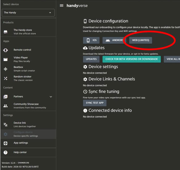 [旧HandyVerse(old.handyfeeling.com)]を使用して設定、接続を行えます。