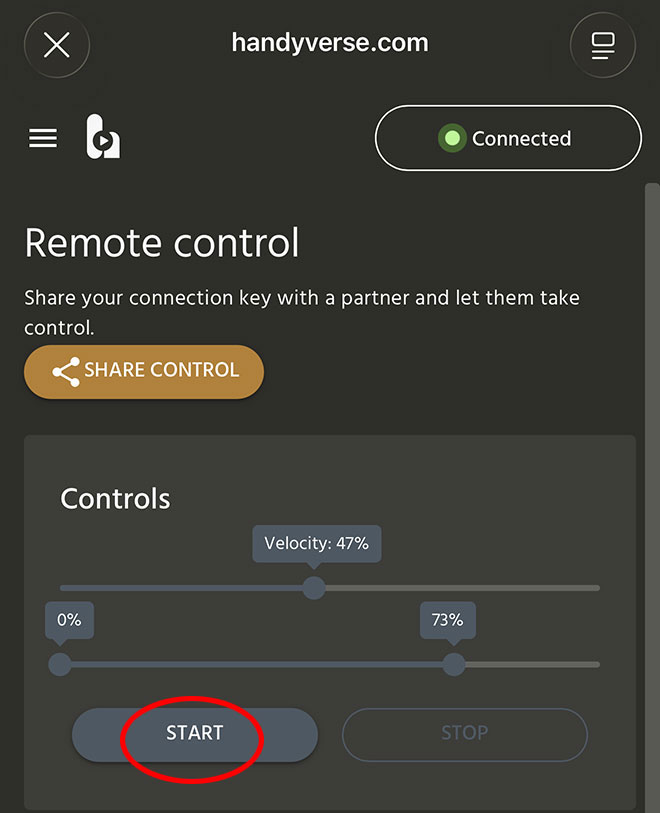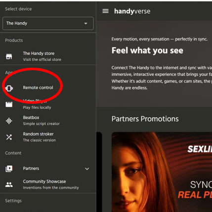 5.その状態でHandyVerseサイトのRemote Controlを押下します
