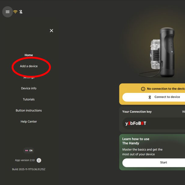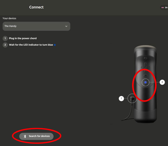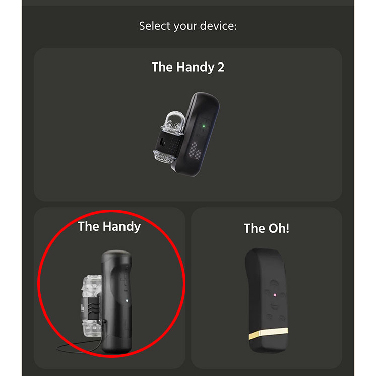 3.Select your device で The Handy を選択します。