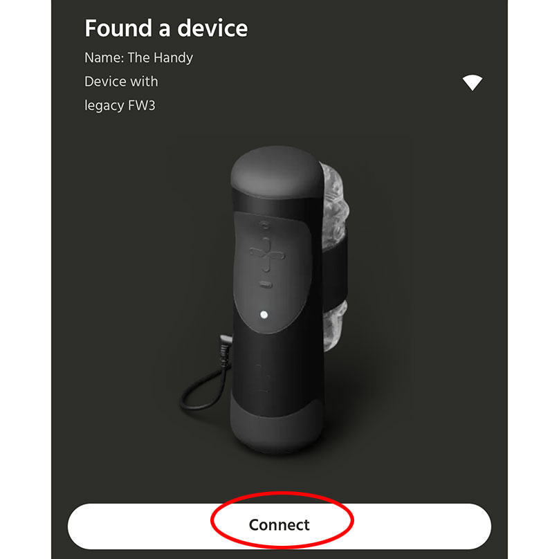 4.Found a device にハンディが表示されたら、 [Connect] ボタンをタップします。
